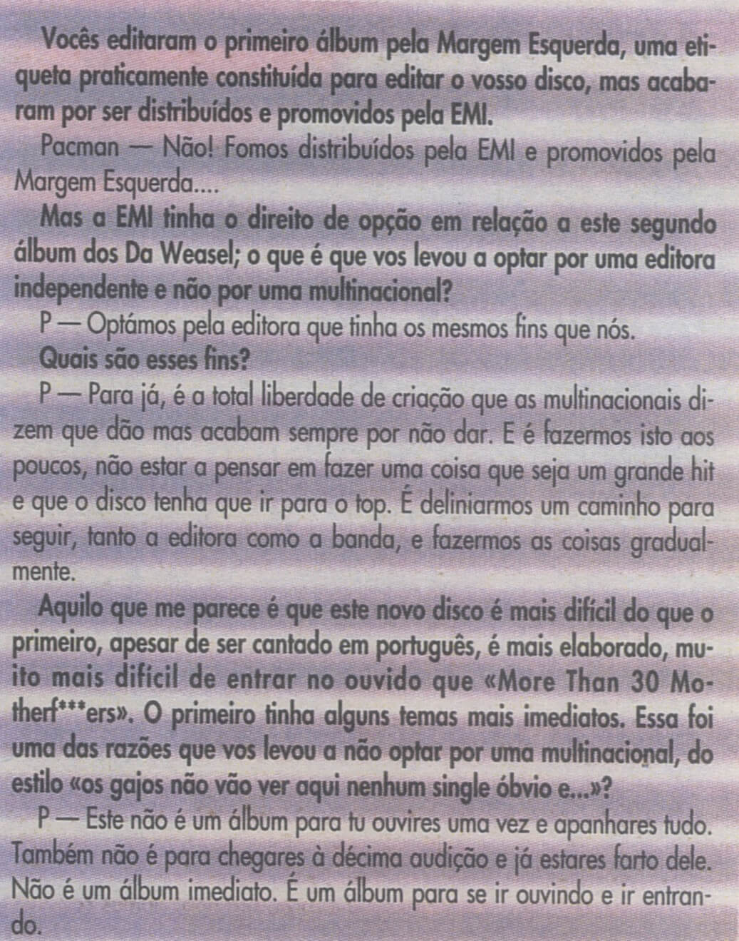 Mas a EMI tinha o direito de opção em relação a este segundo álbum dos Da Weasel; o que é que vos levou a optar por uma editora independente e não por uma multinacional?
