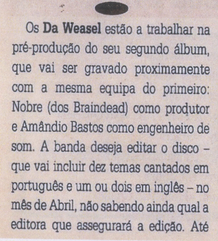 Os Da Weasel estão a trabalhar na pré-produção do seu segundo álbum, que vai ser gravado proximamente com a mesma equipa do primeiro: Nobre (dos Brainead) como produtor e Amândio Bastos como enqenheiro de som.